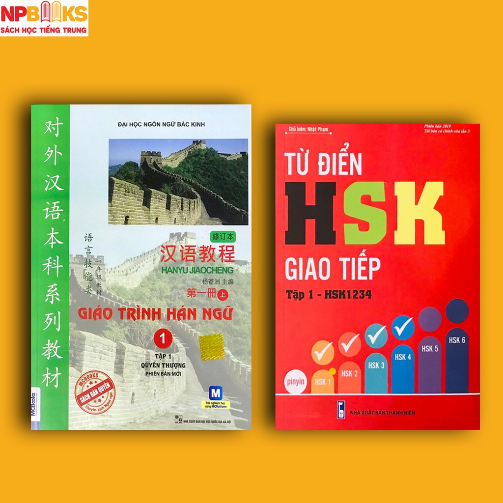 Sách - Combo giáo trình hán ngữ 1 ( tập 1 quyển thượng) + từ điển HSK giao tiếp tập 1 (HSK1234) free ship